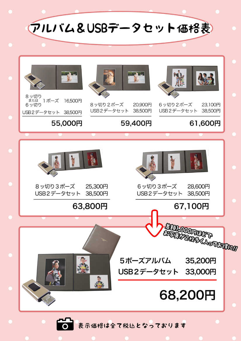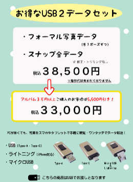 アルバムとCDまたはUSBデータの組み合わせも出来ます。