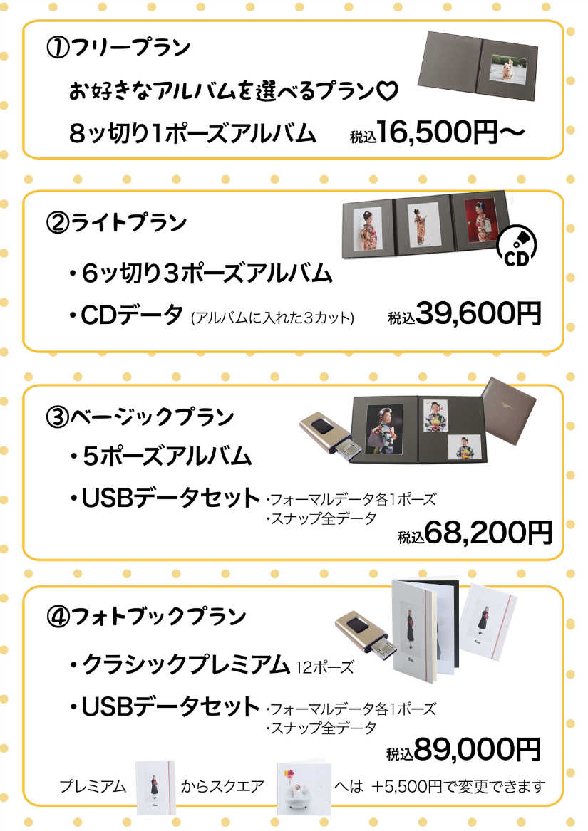 上記プランには、全て撮影代が含まれております。